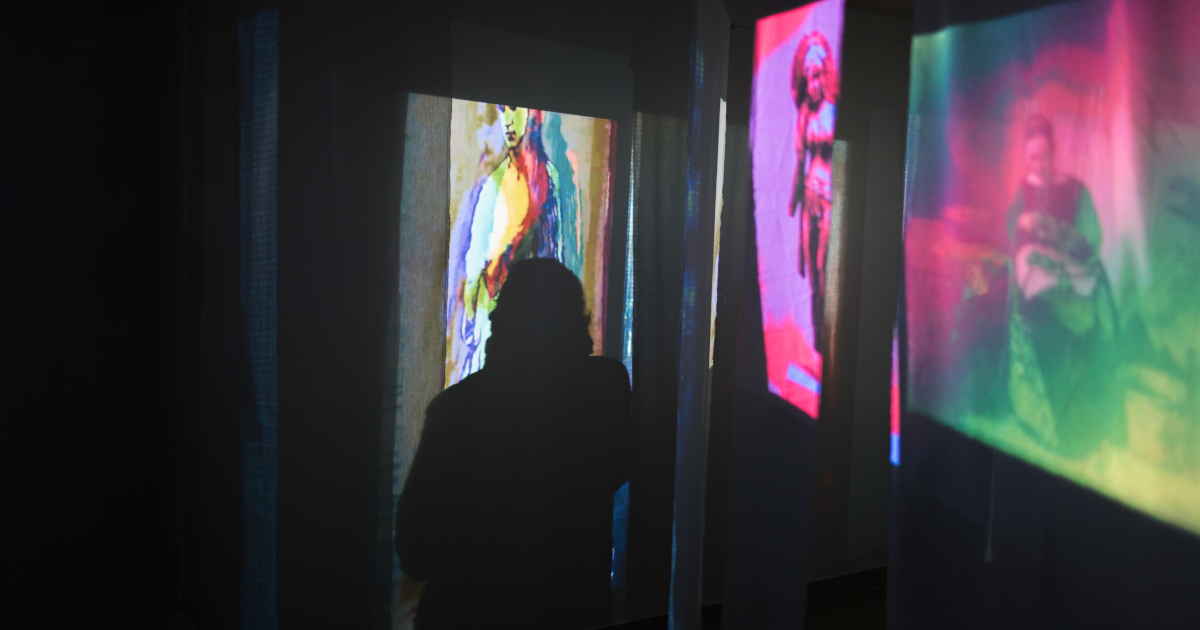 À l’intérieur de l’espace peuplé de voix et d’images, les visiteurs et visiteuses sont invités à la déambulation, la contemplation et l’écoute de figures qui apparaissent et disparaissent.