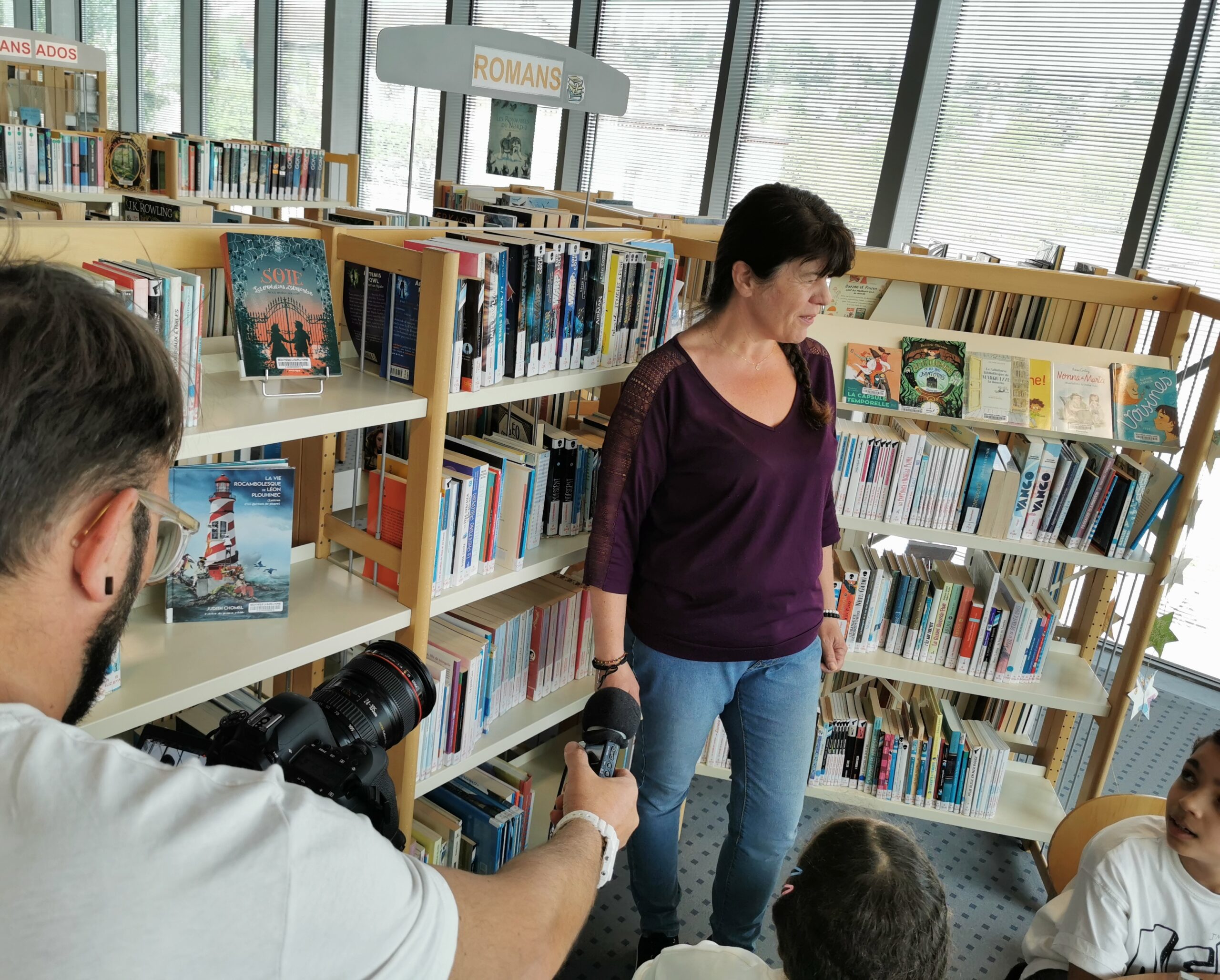 Silence… ça tourne à la médiathèque ! Les enfants ont pu jouer de nouvelles scènes pendant les horaires de fermeture au public, afin d’utiliser librement les espaces et les rayonnages. Ils ont également donné le meilleur d’eux-mêmes afin de respecter le timing et de mener à bien le tournage.